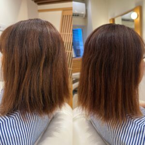 施術後は、髪の広がりも落ち着き、目に見える艶感とまとまりを実感していただけました。